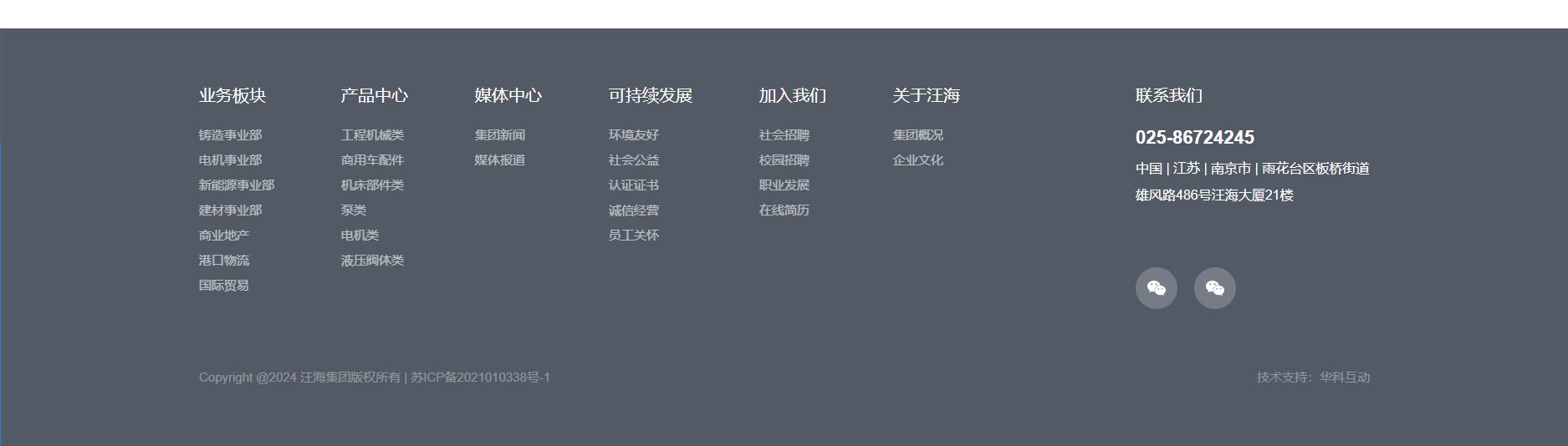 汪海集团有限公司是一家集装备制造、新能源、绿色建材、港口物流、商业地产等产业于一体的多元化民营企业集团。集团创建于1999年,总部位于南京市雨花台区,下属子(分)公司20余家,包含7大事业部:铸造事业部、电机事业部、新能源事业部、建材事业部、商业地产事业部、港口物流事业部、国际贸易事业部,业务遍布江苏、安徽、内蒙等地。